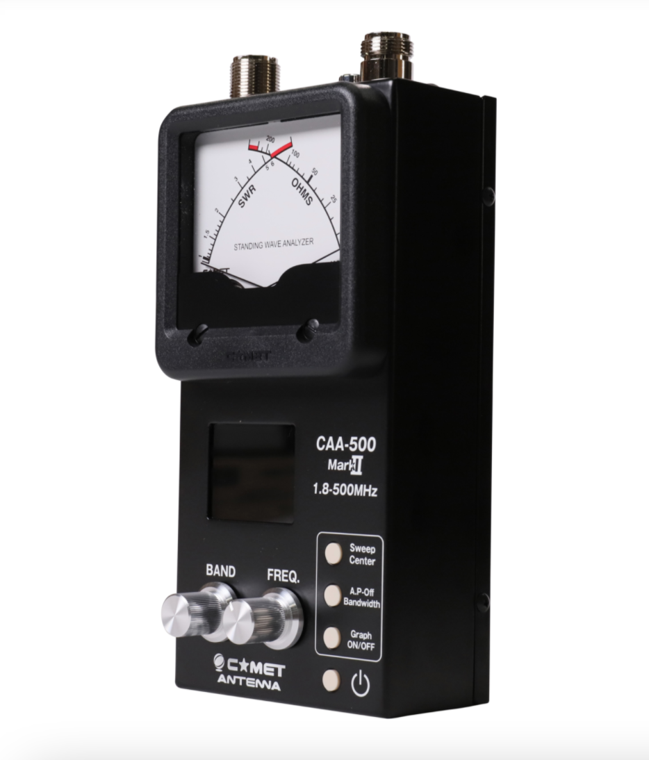 Analizador SWR e impedancia de 1.8–500 MHz con aguja cruzada analógica y pantalla LCD TFT a color. Impecable, un solo uso.