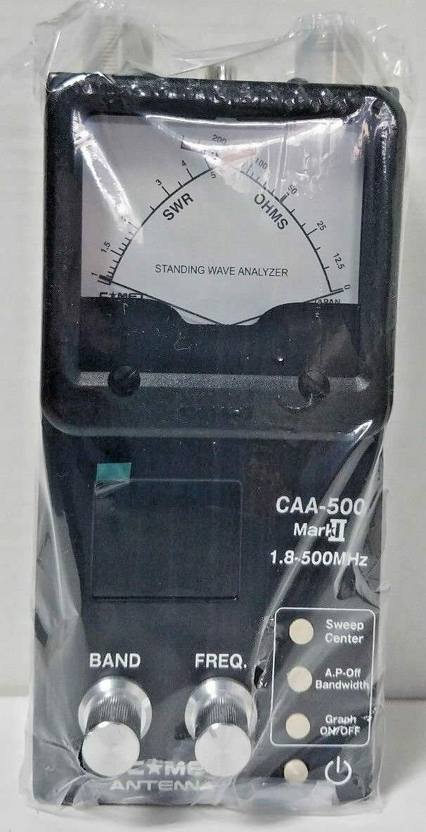Analizador SWR e impedancia de 1.8–500 MHz con aguja cruzada analógica y pantalla LCD TFT a color. Impecable, un solo uso.